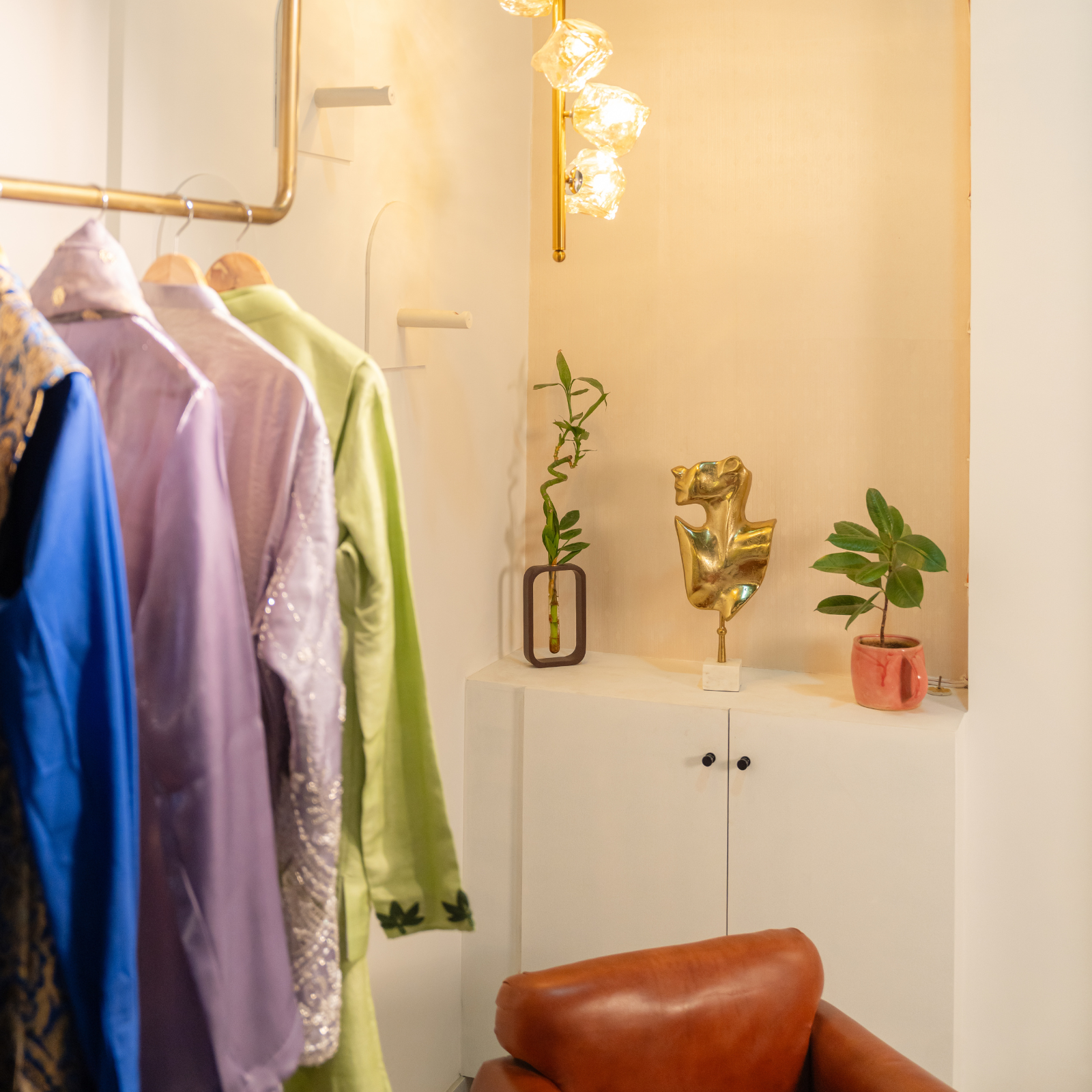 Traditional techniques and contemporary tailoring coexist within the store’s setting, creating an atmosphere that respects heritage while embracing precision.